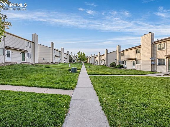 This beautiful end unit townhome is conveniently between Powers and Mark Sheffel for easy access to shopping, dining and a plethora of services as well as a quick commute to Peterson Space Force Base, Shriever Space Force Base and Ft. Carson. You pass through a well kept community courtyard to enter through the front door and have 2 dedicated spaces for parking just off the enclosed rear patio and rear door. As you enter you are greeted by an open concept main level with a dedicated and convenient main level laundry space just off the kitchen. The large kitchen features a breakfast bar and window allowing natural light to flood the space. The Living/Dining room combo features faux wood flooring and a large wood burning fireplace. A half bath completes the main level. Upstairs you'll find 3 bedrooms and a full bath. Home features new window shades, new paint and plush carpet, new light fixtures, new toilets, new sink, iron security door, private fully fenced patio. This great townhome is vacant and move in ready, just waiting for its new owners!