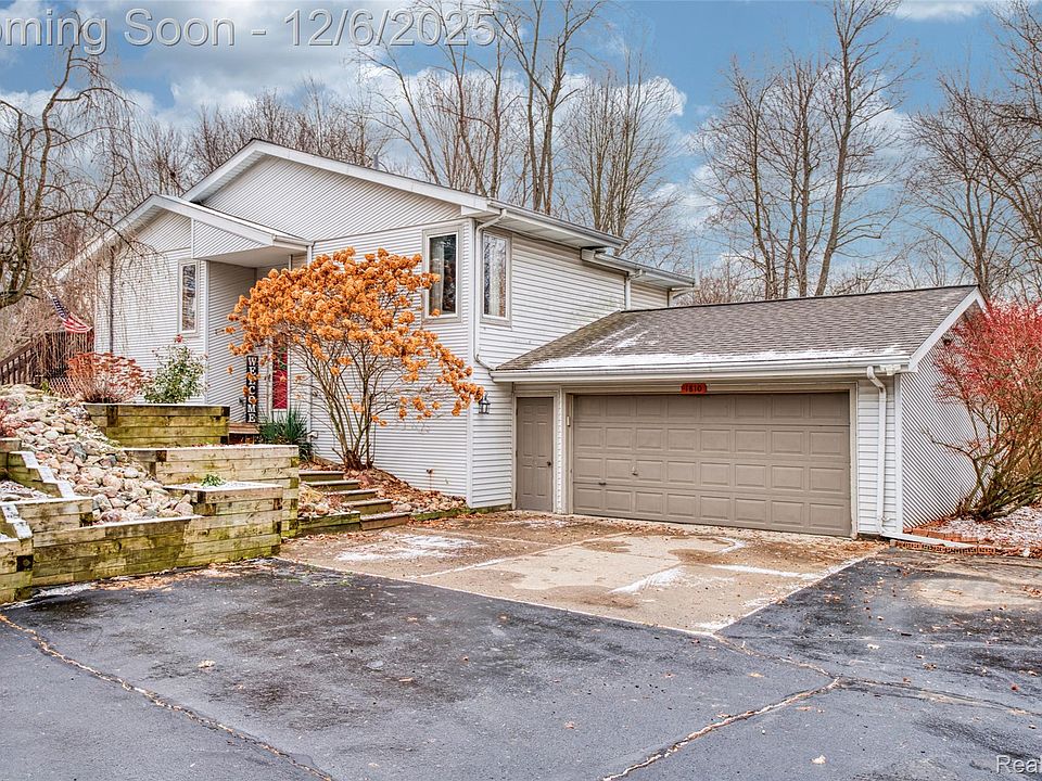 Tucked away on 1.4 peaceful acres, this inviting Williamston bi-level offers privacy, space, and beautiful natural surroundings. A long, tree-lined driveway sets the tone as you arrive at the home, giving the property a secluded, “hidden retreat” feel while still being close to town and schools. The main level features an open, comfortable layout with a spacious living area anchored by a two-sided fireplace—perfect for cozy evenings or entertaining. A second flex-space sits on the other side of the fireplace, offering options for a home office, sitting room, den, or potential 4th bedroom. The kitchen is warm and welcoming with hardwood flooring, granite counters, an island with seating, gas range, pantry, and plenty of cabinet space. An oversized bay window in the dining area frames a gorgeous view of the property’s wooded backdrop and brings in wonderful natural light. The lower level includes two generously sized bedrooms connected by a full bathroom with dual sinks. You’ll also find a large family/rec room and a dedicated laundry area with exceptional storage—something this home has no shortage of! All bedrooms feature great closet space, and both the house and the attached 2-car garage offer multiple storage options throughout. Step outside onto the expansive deck overlooking the private yard—ideal for summer gatherings, quiet mornings, or simply enjoying the peaceful setting. Additional highlights include a high-efficiency furnace and AC, well and septic for low utility costs, and Williamston Schools with low Wheatfield Township taxes. A beautifully maintained home surrounded by nature—move-in ready and easy to love. Curtains and stainless steel refrigerator in the garage are excluded from sale. The price of eggs may no longer be a problem, as Chickens can stay if buyer is interested.