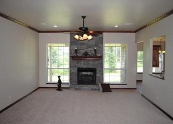 NEW HOME Large open living, dining, kitchen area. Sprinkler system, solid surface countertops, wood floor in formal dining area, smooth cooktop stove, oversized garage with 558 sf. MLS# 429755