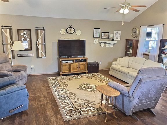 Well maintained home is move in-ready but the first thing that will catch your attention is the beautiful landscaping! When you step inside the front door into the great room, you will feel perfectly at home and the tall cathedral ceilings lend a sense of grandeur. The master suite has a trey ceiling, walk in closet, on-suite bath has a walk-in tile shower. Attached 2 car garage. Large covered back deck. 2 outbuildings currently being used as workshops. Corner lot with Privacy fence.