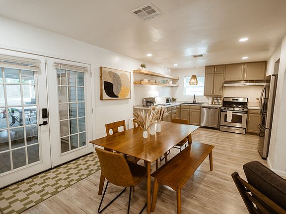 TURN-KEY AIRBNB! This unique duplex short-term rental is the ultimate blend of comfort, style, and opportunity - perfect for living, renting, or house-hacking. Together, both units sleep up to 10 guests and come fully furnished as pictured.The property boasts incredible amenities, including a full-sized pickleball court with string lights, a fully fenced backyard, a spacious covered patio, and a quiet cul-de-sac location. Inside, you’ll find a beautifully styled interior with modern touches throughout.The main home offers 3 bedrooms and 2 bathrooms, while the attached (but completely separate) ADU features its own private entrance, king bedroom, full kitchen, and bathroom. It’s the perfect mother-in-law suite, guest quarters, or rental space. A large laundry room conveniently serves both units.This one-of-a-kind property is move-in ready, income-ready, and entertainment-ready. Come see it in person today!