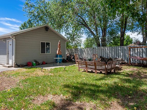 3 bed/2 bath. Open living room and kitchen area with vaulted ceilings. Tiled bathrooms. Seperate laundry/utility room. Spacious master bedroom with updated wood vinyl flooring, large walk-in closet, sliding glass door leads to backyard. Oversized detached garage is 19x21ft. Huge concrete paved area between house and garage, can easily fit 2 vehicles behind the fence. Entire backyard is fenced. Concrete pad behind garage for outdoor furniture. Walk in shed in the backyard. Fire pit and a hammock.