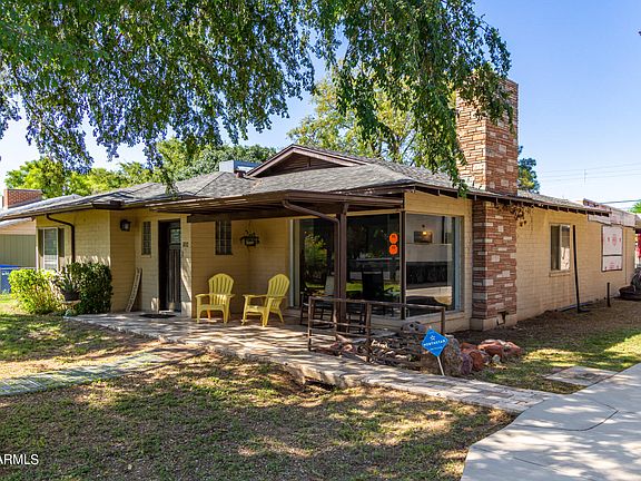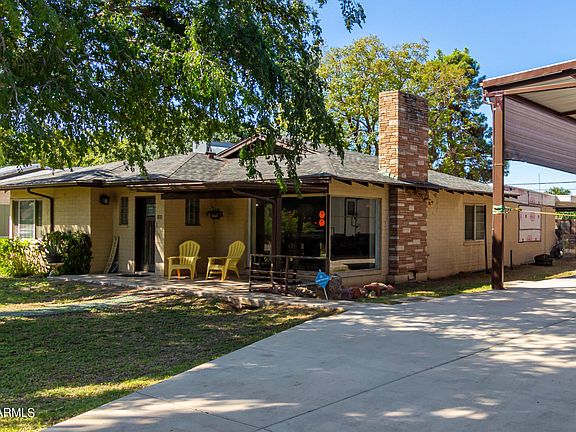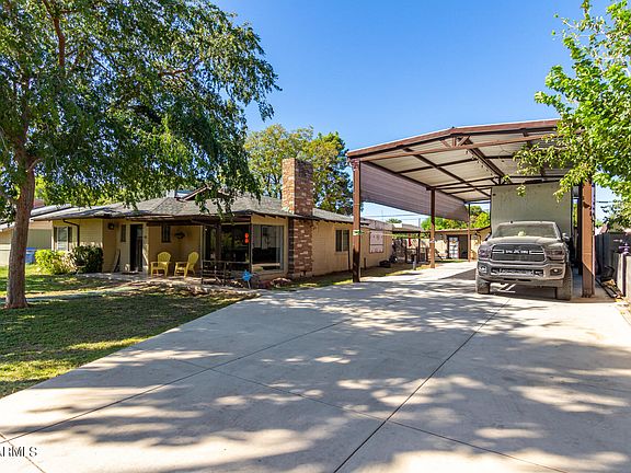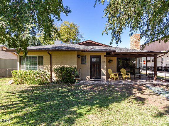 Charming 3-bedroom home boasting tile floors and recessed lighting. The bright living room transitions seamlessly into a formal dining room perfect for gourmet meals. A kitchen showcases wooden cabinetry, built-in appliances, granite counters, a stylish stone-accented backsplash, and a pantry. The spacious main bedroom offers a his and hers closet. Enjoy the convenience of a separate guest quarter, complete with a kitchenette and bathroom. Outdoors, revel in a covered patio, built-in BBQ, a dedicated seating area, and vehicle access. Additional amenities include a detached 2-car garage and RV carport/parking. Beautiful back-yard for entertainment. A true gem not to be missed!