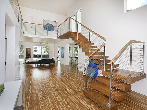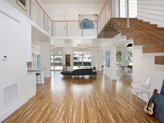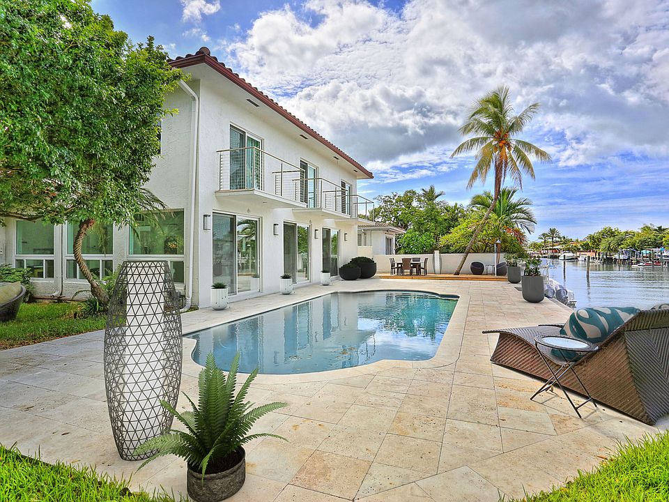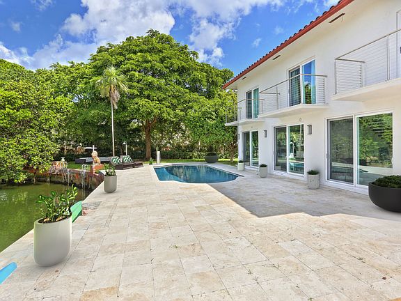 This magnificent modern 5BR/4BA masterpiece was totally gutted & remodeled, no expense spared. It is brand new!! Located on a large 11,803 sf lot, this 2 story is 73' on a deep wide canal, 1 block from the bay w/ no fixed bridges & has a 29' concrete dock, easily dock a 65' boat. Features include new drywall, 10-20' ceilings, rich wood on 1st floor, modern polished terrazzo on 2nd floor, new professional chef's white lacquer open kitchen w/ gas & electric ovens, Bosch fridge plus 2 fridge drawers , wine cooler, grand staircase floating off the wall, 3 zone a/c, all impact glass windows & doors, master suite has large outdoor patio, all new plumbing & electric. Garage for 1 car & golf cart. Pool totally remodeled 1 year ago w/ heater & salt chlorinator.Easy to show bring your fussiest buyer