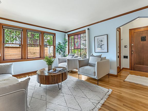 Dreamy English Tudor beckons from coveted Rose City Park on a quiet, tree-lined street just steps to the park, golf course, and Halsey St food-carts. 30's era details amid a flourishing, mature garden add to the charm of this sophisticated abode. Inside, the combination of thoughtful kitchen updates combine with hallmark vintage aesthetics such as leaded-glass windows and original, topnail oak hardwood floors. The main level provides a smart, circular floor plan including two main level bedrooms with hardwood floors. A convenient backyard & covered, brick patio includes easy access to the fenced, driveway & detached garage. The upstairs is a dedicated primary suite - including soak tub, fir floors and adjacent home office which could easily be used as a dressing room, 2nd closet, or nursery). The lower level family room offers a commanding wood-burning fireplace - an amazing flex space that could be game room, craft space or home gym. The 4th bedroom is perfect for a guest or teen. Don't miss the ample utility room and bonus storage space - as well as full bathroom. All this just minutes to Trader Joe's, New Season's, Fremont eateries, downtown PDX & the airport. Boom! [Home Energy Score = 2. HES Report at https://rpt.greenbuildingregistry.com/hes/OR10185529]