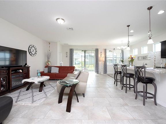 This Gorgeous home has an open concept living area with 3 bedrooms + a Flex bringing another bedroom option with closet or office/Den for 4 bedrooms and 2 Full bathrooms, the Master suite includes his and her closets. Kitchen cabinets with crown and stainless steel handles hardware, granite countertops, all stainless steel appliances and a huge island/breakfast bar. This property offer a screened porch to enjoy our Florida weather and nature lifestyle. Located in the beautiful Town of Kindred just minutes from the Turnpike, close to attractions, restaurants and shopping centers. The community offers amenities like pool, 3 miles of Walking nature trails, Full gym, gorgeous clubhouse, beach volleyball, tennis courts, playgrounds, soccer fields, Dog Park and much more. For more information call or Text Agent for appointments.