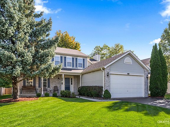 Beautifully maintained 4-bedroom home offering the perfect blend of comfort, style, and functionality on a large newer fenced-in lot with a spacious concrete patio for outdoor living. A newer driveway, luxury vinyl plank flooring, HVAC, roof, hot water heater and upgraded attic insulation add value and efficiency, while the charming front porch provides the perfect spot to enjoy your morning coffee. Step inside to find a cozy living room, formal dining room with views of the backyard, and a sun-filled kitchen featuring newer stainless steel appliances, granite countertops, breakfast bar, and eating area with sliding doors leading to the backyard. The kitchen flows seamlessly into the inviting family room with a fireplace as its centerpiece. First-floor laundry is equipped with cabinetry, shelving, and a utility sink. The oversized primary suite boasts a private bath and walk-in closet, while the basement offers flexible space for recreation, lounging, or play. Conveniently located near schools, parks, Route 59, shopping, and dining-this home truly has it all!