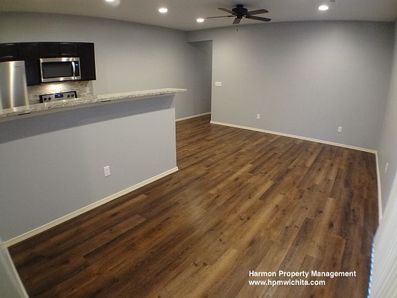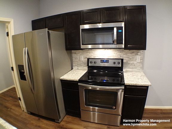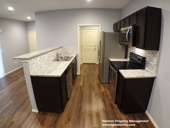 1810 S Bonn is one side of a newer duplex and is a 3 bedroom 2 bathroom rental located near the intersection of Meridian and Harry in South Wichita. The property consists of a large combination living room and kitchen area, otherwise known as a great room. The living room has sliding glass doors leading out to a concrete patio area with a fenced backyard. The kitchen has granite countertops with a tile backsplash and newer stainless steel appliances (stove, fridge, microwave, and dishwasher) provided by the property owner. There is a separate laundry room with washer and dryer hookups available. The living room, kitchen, laundry room and hallway all have newer laminate flooring. Down the hall, there is a hall bathroom and 3 bedrooms all with newer carpet. This includes a master bedroom with a full master bathroom and a walk-in closet. The property also has an attached one-car garage. This property has many upgrades not found in other rentals in the area. It must be seen to be truly appreciated. This unit is available for rent today. Be sure to check out the video on this listing for a guided tour through the property. Rent is $895 per month Security deposit $850, due in full at lease signing before keys and possession of the property will be given to the tenants One year minimum lease Tenants are required to have renter's insurance (tenant will be able to deduct monthly rental insurance cost from monthly rent up to $10 per month). Tenant is responsible for all utilities, trash service & lawn care within the fenced backyard only. Small pets under 25 pounds are allowed with a one-time non-refundable pet fee of $300 for the first two pets, $150 for each additional pet. Pit Bull, Rottweiler, Doberman Pinscher, Chow, Akita, Alaskan Malamute, German Shepherd, Siberian Husky, Saint Bernard, Wolf Hybrids, or a mix of any breeds listed are not allowed for insurance and safety reasons. The property owner has final approval of all pets. This property is not section 8 approved. All prospective tenants must complete a quick pre-screening questionnaire before being allowed to view the property in person We perform background checks which are $35 per person over the age of 18, at the time of application. Property Showings & COVID-19: We are aware Sedgwick County has issued a stay-at-home order. We have determined that real estate services have been designated as essential and exempt from that order. People will still need housing, therefore we will continue to show property but take additional precautions like sanitizing surfaces in between showings and practicing good social distancing by allowing prospects to view units while our showing agents wait outside at a safe distance. All we ask in return is that prospects do not schedule showings if they are exhibiting any COVID-19 symptoms including but not limited to cough, fever, fatigue or severe cases of difficulty breathing.