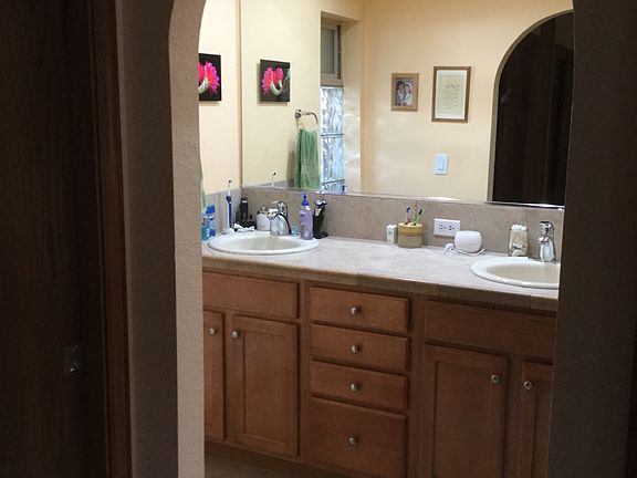 Gorgeous! 1979 slump block construction, 3 bdr 2 bath. Both bathrooms have custom tile work, hall bath has a jacuzzi style tub. Tile flooring throughout home except in the bedrooms that have new carpet. Kitchen has newer cabinets with granite tops and appliances that will stay. Livingroom is good size with a rocked fire place as a beautiful focal point. Home has soft water system and RO in the kitchen. Central vac system to cover entire home and ports at patio/garage. New roof in May of 2017 and exterior paint in August 2018. Trane A/C system serviced regularly. Outside of home is just as stunning! 2 car garage with 1 car carport on side of home enclosed with double gate. LARGE backyard with beautiful pool surrounded by flagstone. Propane fire pit and enclosed garden/chicken coop. Large covered patio with flagstone. Plenty of extra area to expand or just enjoy the privacy of tall block walls. Many extra in home you got to see.