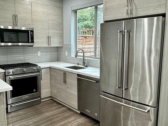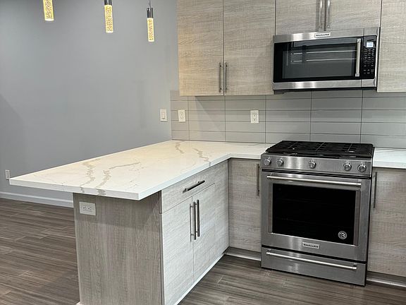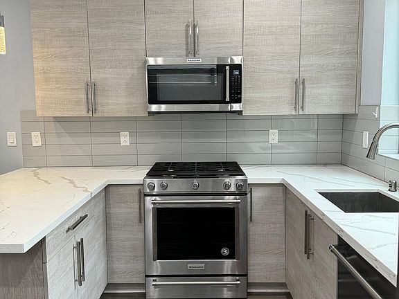 A sleek end-unit townhouse, built in 2020, offers 3 bedrooms, 2.5 baths, and 1,084 sq ft of modern living space. The gourmet kitchen features bar seating, quartz countertops, a tile backsplash, and KitchenAid stainless steel appliances. The 3rd floor master suite boasts a walk-in closet and full bath. Amenities include air conditioning, and an LG washer and dryer. For outdoor space, a redone backyard with Japanese inspired landscaping including a cherry blossom tree and a pet door, and a rooftop with pergola. Renter is responsible for utilities. First month's rent due at signing. No smoking allowed. Pets are allowed with a non-refundable one time pet and cleaning fee of $300. As part of our standard tenant screening process, a background check will be conducted upon selected prospective tenants. Prospective tenants are responsible for the cost of this background screening.