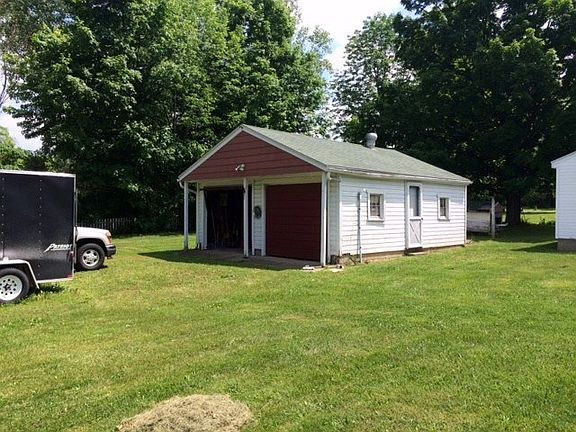 Well Maintained and Affordable! this home has approximate 1025 sq ft which includes 2 Bedrooms, Living Room, Dining Room and Kitchen. Low maintenance vinyl siding exterior and new gutters. Double pane wood windows, front steel entry door and updated roof shingles (approx 8 yrs old) Propane FA Furnace (11-12 yrs old), C/A (8 yrs old) and oak kitchen cabinets and wood laminate flooring. Propane free standing fireplace in the living room. Detached vinyl sided shed is approximate 10 x 15 and has heat, electric and carpet!! Over sized detached garage. The house is serviced by Jefferson Regional Water..the well is no longer used. All measurements are approx...please make your own verifications