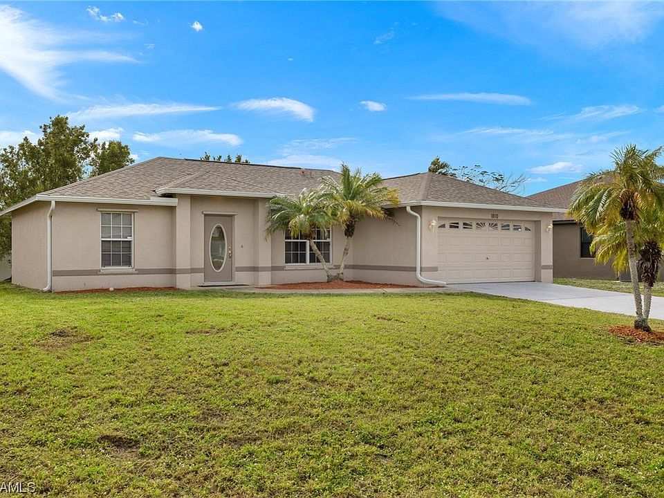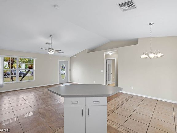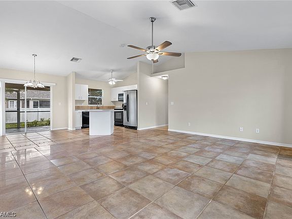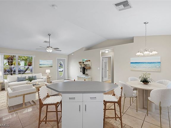 SW Cape Coral home ready for immediate Move-In! Enjoy the vaulted ceilings in the living room, split bedroom floor plan, and open kitchen concept. Kitchen has a breakfast bar with dining area that leads to lanai through sliding glass doors. Spacious south facing backyard has plenty of room for a pool, access through the screened lanai off the dining area or through French doors off the primary bedroom. Primary bedroom has an ensuite bath and walk-in closet. Laundry room off the 2-car garage with washer and dryer. Fantastic location close to restaurants, shopping, schools, healthcare and transportation. NO FLOOD INSURANCE REQUIRED! On city water and sewer and ASSESSMENTS PAID. ROOF REPLACED in 2020. Taxes do not reflect homestead exemption. Call today to schedule your private showing.