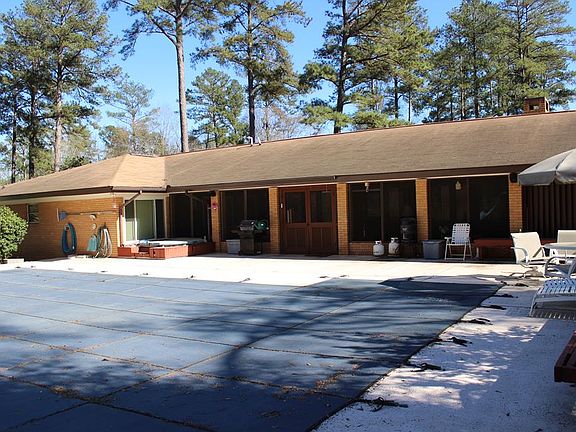 4 bedroom , 2 1/2 bath brick mid-century modern located on 0.68 acres is one of the finest built homes in Carrington Woods. Mid-century modern architecture is known for open floor plans and large span windows to encourage healthy living and open mindedness and this house does just that! Formal living/dining room is bright & airy and the kitchen and den are combined into one large room which features a large wood burning fireplace with a floating cement hearth and a wall of windows overlooking the in-ground pool, spa, and wooded backyard. There are 4 bedrooms, 2 baths adjoined by a family room with nice built-in bookcases. Details such as exposed brick walls and solid wood paneling, a screened porch that serves as an entryway from the 2 car garage which houses a workshop and half bath.