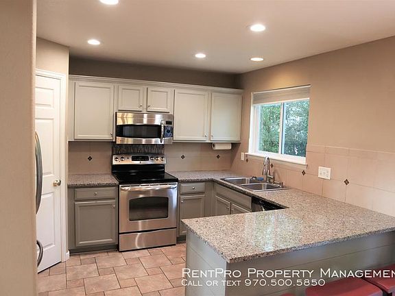 Available August 1. RentProPM.com Beautifully updated home in NW Loveland. 5 bedrooms and 3.5 baths. Granite counter-tops and stainless steel appliances. Master bedroom with on-suite bath plus walk-in closet. Finished basement has living room, bathroom and bedroom. Large fenced back yard. Washer/Dryer included. Forced heat and AC. 2 car attached garage. Pets allowed. Tenant pays all utilities.