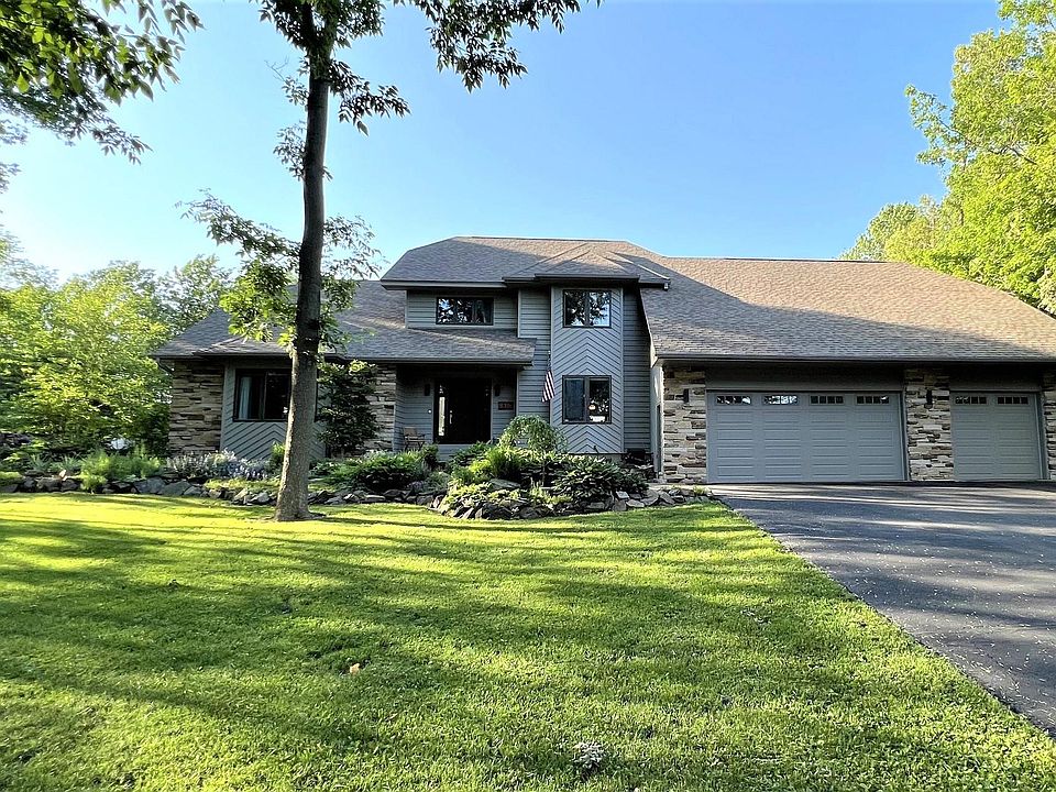 Outstanding Riverview Home, exceeds expectations! This custom quality built home offers a complete retreat for your living style! The contemporary open and airy floor plan is welcoming and expansive, bringing the outdoors in with abundant windows facing the incredible back yard. As we enter through the welcoming foyer, you will notice the double entry staircase, the open great room boasts a vaulted and beamed ceiling with floor to ceiling stone wood burning fireplace, there is a dry bar (plumbed for sink) for entertaining. Adjacent to the great room is the den with integrated sound system, filled with natural light and patio door access to its own new composite wood deck. Beyond the great room is the open concept newer kitchen with hearth room/dinette. A chefs dream with Featherstone, gentle close cabinetry, center island, quartz counters, subway tile back splash. Incredible appliance package, includes full size fridge and freezer, wall oven, plate warming drawer, microwave, gas range with beautiful hood and a pot filler spigot! The dinette will be a favorite space to enjoy meals by the gas log fireplace and includes mounted flat screen TV, overlooking the back yard with deck access. The spacious main floor laundry room has a sink, plenty of storage and outdoor access. There is a guest bath at the garage entry foyer. The main floor tour continues on to include a formal dining and primary bedroom suite, spacious with sitting area, walk-in closet with dual side built-in storage and a spa styled bathroom with jet tub and separate shower. The upper level brings us to a loft landing area, a private secondary bedroom with its own full bath, to the other side, there are two spacious bedrooms with their own sink vanities with adjoined jack-n-jill bath. The upper vaulted storage room offers storage and is wired for any finished area you can dream of. The lower level living space is well equipped for entertaining with a spacious game and family room with the 3rd fireplace which is wood burning. Enjoy movie nights in the home theater room with included AV equipment, projector screen and reclining seating! There is also a full bath and a large storage room. The home is situated on a beautiful wooded lot which is nearly an acre in size and extends to an improved park-like setting in 2020 featuring a spacious deck, flagstone fire pit area, an additional flagstone sitting area and black topped play area great for basketball and a volley wall for tennis or pickle ball! The garage is an over sized 3 car, drywalled and heated with a coat and shoe drop zone! Some notable improvements, two new furnaces with air conditioner compressors in 2019, exterior painted 2021, new gutters 2021, Den remodel 2020 with integrated surround sound. Most of the displayed furnishings are negotiable.
