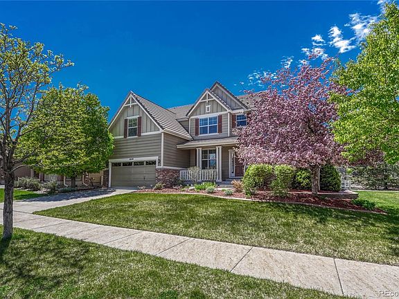 The Anthology community in Parker is known for its beautiful homes and amenities, and this corner lot property is no exception. With open space next door and a community pool just steps away, the location is ideal for enjoying the outdoors. The landscaping surrounding the home is stunning, with mature trees and a private covered patio creating a welcoming entrance.