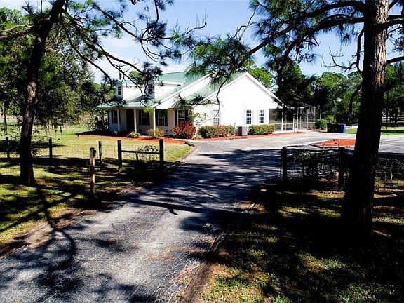 Cute Country home on fenced 2 acres with city water and sewer. As you drive through the mechanical gate you will notice the abundance of paved parking and large mature oak trees watching over the primary home and the detached mother in law cottage. The in law house has 504 sq feet of air conditioned space for its own bedroom, bathroom, and living/dining area. The paved driveway is perfect for parking your RV, Boat, all terrain vehicles and more. Your main house is protected by a metal roof and roll down hurricane shutters under the lanai. Kick your boots off before entering this turnkey, well maintained 2086 sq foot pool and spa home. This home features vaulted ceilings in the living room with tile and laminate wood flooring throughout. The fabulous kitchen has plenty of storage and Corian countertops with plenty of space for large family gatherings and entertaining guests. The nice sized patio area has a large free form heated pool and spa and Screened enclosure. A long concrete sidewalk connects the mother in law house to the main house. Owners have installed a pet fence around the home and a second pet fence around the property. Call now to schedule an apt.