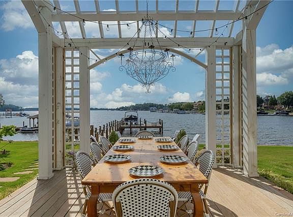 Enjoy expansive Lake Norman sunsets from this Patrick Joseph custom designed home in The Peninsula area of Cornelius. Exquisitely crafted this property's soaring windows provide unrivaled views from almost every room. Enjoy entertaining and outdoor lakeside living from the ample lower terrace, as well as a lakeside built-in firepit. Complete with high end custom finishings, this home is situated in one of the area's most desirable settings. Exquisite gourmet kitchen featuring Walker Zanger tile backsplash, quartz countertops with generously sized island, features professional grade appliances including La Cornue 5 burner range,Thermador steam oven & dishwasher, scullery with Thermador built-in refrigerator & sink with instant hot water. Elegant entry lined with bookshelves, formal dining area, and lakeside great room with exposed beams completes the main living area. Owner's oasis on main with dark plantation shutters & custom bath with Carrera marble flooring. Builder's personal home