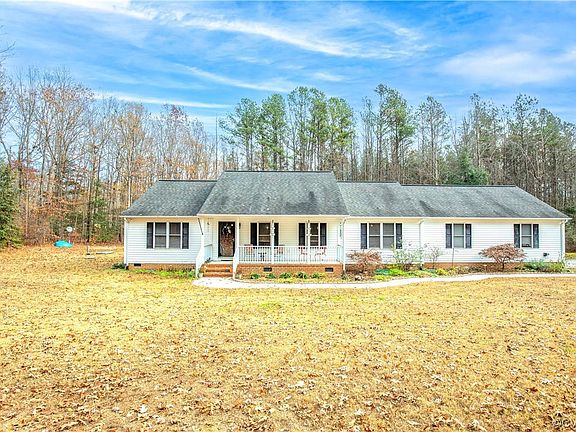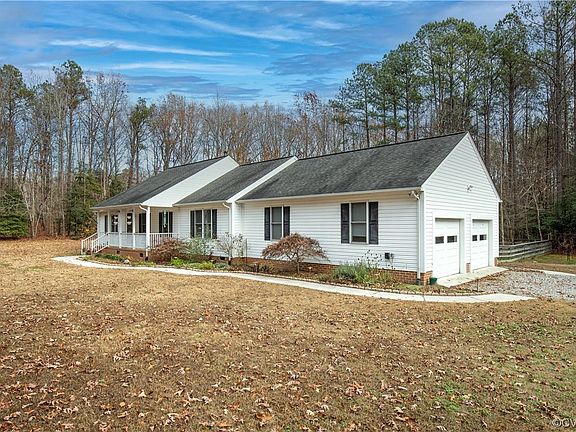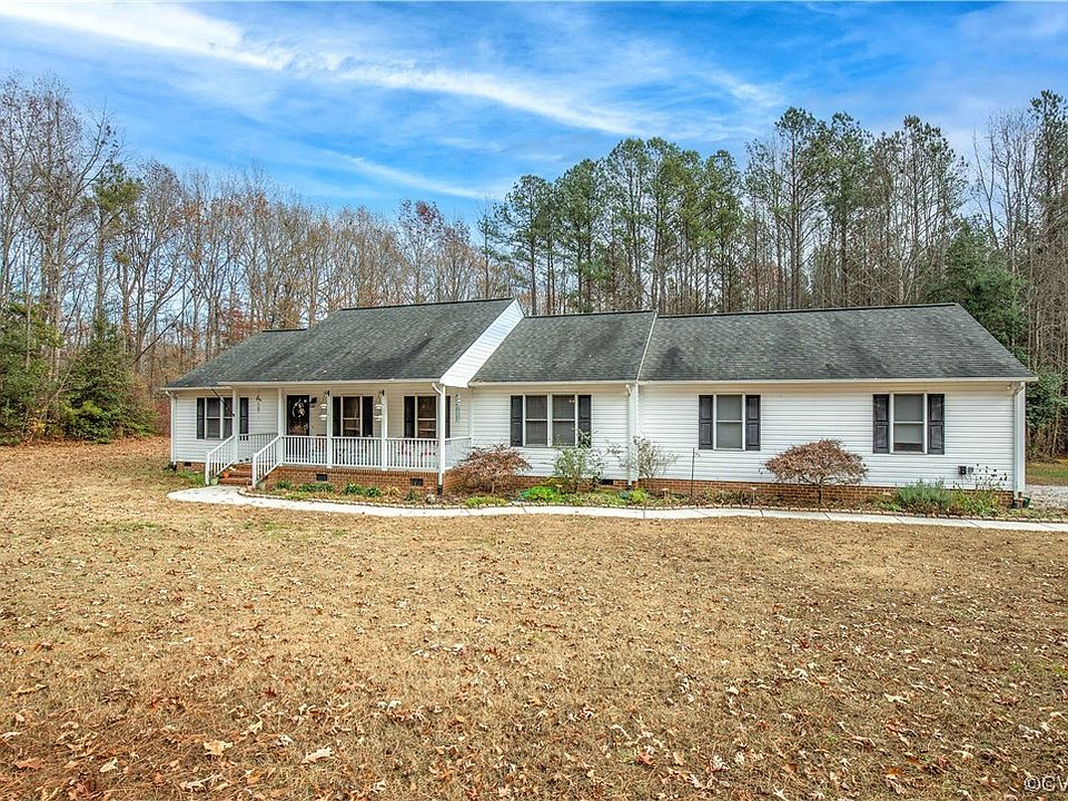 If you’re looking for privacy combined with the convenience of one-level living, then this is THE one you've been searching for! Tucked off the road, this ranch-style 3 bedroom, 2 bath house sits on 5+ acres of mostly wooded land. Interior design features include hardwood floor throughout with tile in baths, and laundry area. Kitchen highlights are stunning cabinetry, Silestone counters, built-in pantry, and stainless appliances. With dining area seamlessly flowing to living room, entertaining is a cakewalk! Living room has a gas fireplace, great natural light, and is wired for surround sound. Primary bedroom is very spacious, offers dual closets, and private bath, which has double vanity, and linen closet. Laundry/Utility room has cabinets. Oversized, the garage has loads of space, custom shelving and attic. Screened porch is a potential paradise with vaulted ceiling. Other exterior features include front and back concrete sidewalks, graded lot, fenced back yard, covered front porch, peace and quiet. Additional highlights: septic system rebuilt 2022, new HVAC 2022, hot water heater replaced 2022, water pressure tank replaced 2022 Schedule your private showing today!
