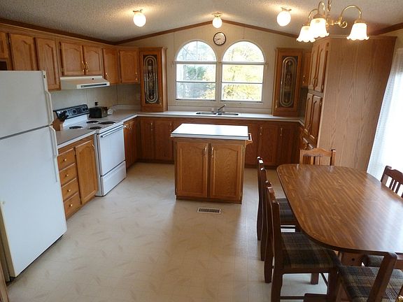 1993 Commodore model home on 3 acres. Block wall foundation, concrete floor with drains. Metal beams used to secure the home on foundation. Great condition on the inside, neat and clean throughout. Plumbing is there to convert the half bath to a second full bath. All appliances convey including washer and dryer.