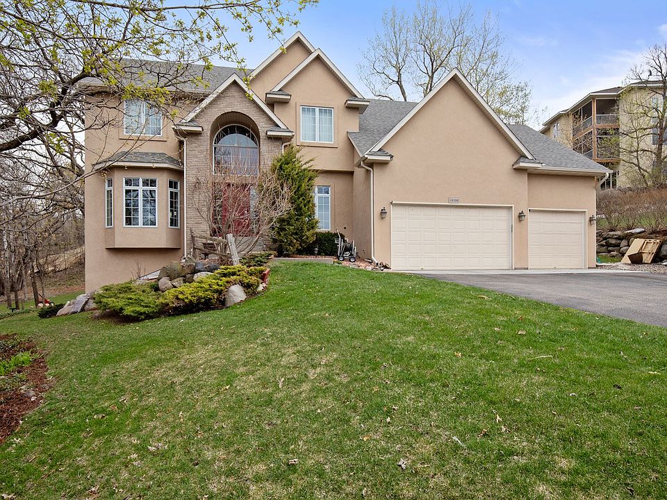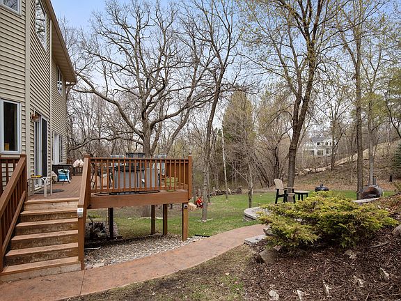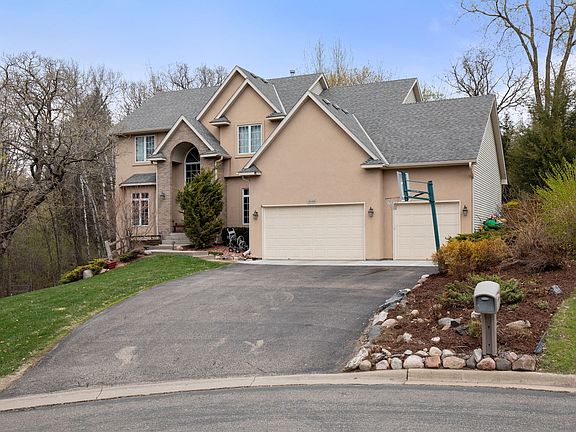 Beautiful 4 BR, 3 BA custom-built family home on a large wooded cul-de-sac lot! Newly remodeled kitchen has it all with white cabinetry, ceramic tiled backsplash, stainless steel appliances, granite countertops and center island. Eat-in kitchen walks out onto a large deck, which overlooks a private wooded backyard. Newly updated two-sided gas fireplace connects the kitchen and family room. Main floor laundry, bath, living room and French doors to office or dining room complete the main floor. Upper level has wonderful large master suite with huge walk-in closet, private bath with jacuzzi tub and separate walk-in shower. Three more bedrooms and full bath complete the upper level. Walkout lower level includes a large family room with gas fireplace and kitchen/bar area. Huge bonus space for exercise/workshop and tons of storage! Oversized three-car garage with plenty of room for your boat and toys! New roof in process and will be completed within the next couple weeks.