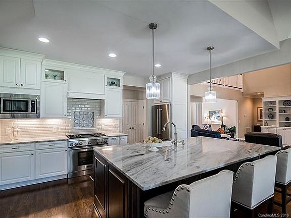 Entertainer's dream: Open floor plan with a great flow around the gorgeous quartzite island - centerpiece of stunning new kitchen, equipped with Thermador range & dishwasher (warranty), trash compactor, Kohler Cast Iron Farm Sink, wine refrigerator and ample storage. Stunning views of 10th green from your beautiful private deck and second deck - Weber Grill. Age in place as the home boasts two large bedrooms on the main level: master suite with gas fireplace, spa tub and two walk-in closets. Second main floor bedroom has full bath and separate entrance. Whirlpool Cabrio Washer & Dryer included. Second floor includes two bedrooms, each with its own walk-in closet and full bath, bonus room for fun and an extra room outfitted with a built-in desk system, bookshelves, storage cabinet and a twin bed. Walk-in attic for extra storage plus large attic with stairs. No basement - no problem!Tax Value reflects newly assessed value pending any appeals. $2000 flooring allowance with accepted offer