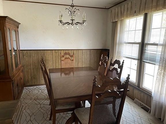 A little TLC at this home and make it your own. The estate sale has ended and back on the market. A very spacious home which includes a large sunroom off the kitchen. Two fireplaces, one in the lower family room and in the great room. A formal dining room and a living room ads space to the main level family gatherings. Four spacious bedrooms on the main level along with two bathrooms. Step down stairs and you will find a great room, kitchen, full bath and a storage room that was used for canning. The Garage is deep and has a workshop. If you're looking for property with a stream and tree's then this is a perfect home. There is a concrete slab where there was a out building close to the home. Large garden area that's fenced. Vinyl siding, thermal windows, a new roof and HVAC.