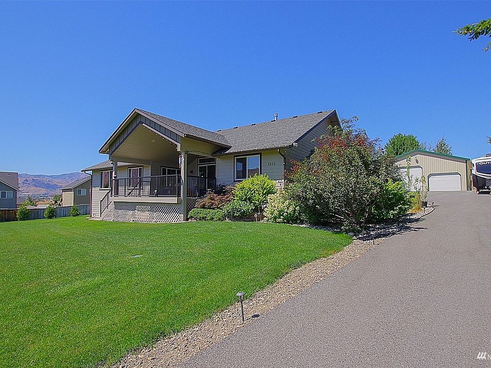 Custom 4 BR + office w 2 bath rambler has everything you are looking for & much more. Enjoy the fantastic views from your covered timbertech deck w ceiling fan, or inside from almost every room. Custom stone propane fireplace, Canyon Creek Cabinets, maple floors, jetted tub in primary w walkin closet, Walk in pantry off kitchen, laundry off of primary BR. Property could be subdivided for add. homes to be built. Paved lighted drive, mature landscaping w fruit trees irrigation to all property w 12 station sprinkler system hooked up. Attach 2 car garage has hot & cold H2O & a distiller for kitchen H2O. 6' crawl space under home for additional storage. Shop 1296 sq ft w 8' & 12' door, insulated, heated & ceiling fans, ext w lean to 4 x storage