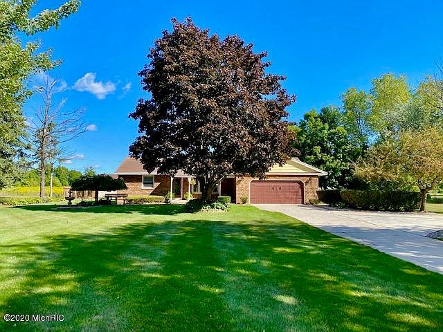 Rare listing in the Award-Winning Byron Center Public Schools and highly desired Bryon Center community with no neighbors behind. Newly renovated out building with dog run & pergola. Lower level non-conforming bedroom recently added. Renovated kitchen makes this a show stopper! Additional perks are a large 3 season room, porch, newer furnace, reverse osmosis water conditioner, ug sprinkling, partially finished basement, recent hook up to public water and gorgeous landscaping! Call today for a private showing!
