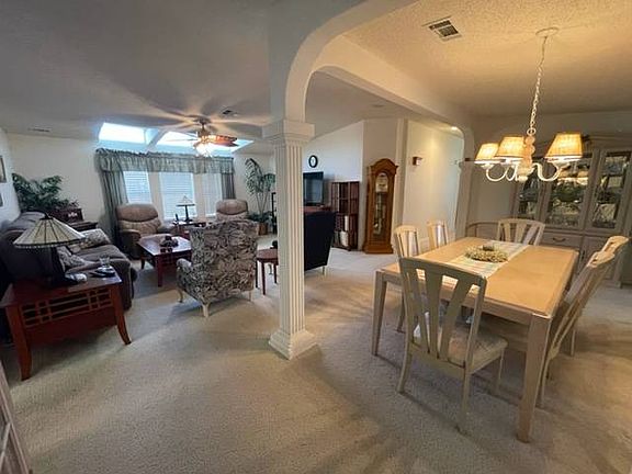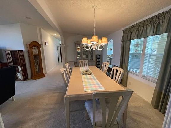 This gorgeous triple-wide home is both spacious and beautiful boasting three bedrooms, two baths, a very large eat-in kitchen, and a family room in addition to the living room! Spend your mornings relaxing in the cozy Florida room that overlooks the 16th fairway of our stunning Golf Course! Enjoy incredible sunsets, and the wildlife, like the eagles and ospreys that watch over the golf course and the lake from their perch high in the trees. New roof in 2011, new air conditioner in 2014, and new water heater in 2015. Great closet space and storage, with additional space in the garage. Home is being sold partially furnished and the purchase includes ONE YEAR FREE GOLF!
