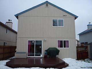 Beautiful 4 Bedroom home in convenient location in South Anchorage. Gas fireplace, open concept living area, kitchen island. Trex decking, one of the largest yards in the neighborhood! Family room with walkout to fenced backyard with play equipment that stays. Newer stackable HE w/d stay as well. One extra parking spot in secure subdivision, outside storage lot for RV or boat.