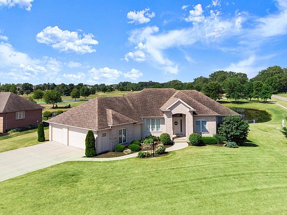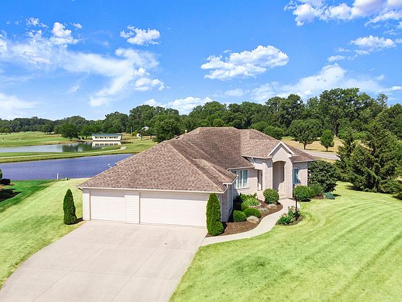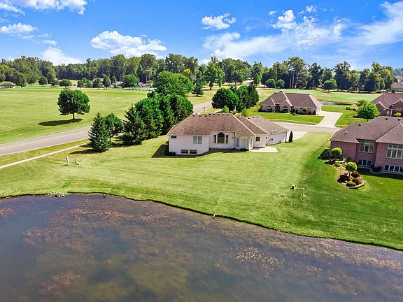 130' of AMAZING Views!! Golf Course, Covered Bridge and Pond. This 3 bedroom 2.5 Bath Ranch is a One-Owner Home. Built by Bob Buescher and MOVE IN READY. The foyer has a view of the pond as well as the kitchen, family room, Master suite and Day light basement. The Great room has 10'H ceilings and a three sided gas log fireplace. The kitchen is large and has an attached breakfast room, kitchen island and walk in pantry. Just steps away is a large laundry room with folding area, cabinets and utility sink. The Master suite has a large walk in closet, soaking tub and stand up shower. The two other bedrooms share a full bath and are spacious. There is enough room to entertain with a total of 2,994 finished sq. ft. Desirable Side load three car garage, stainless steel appliances that stay and a newly finished basement that has tons of possibilities. The basement has massive transom windows with tons of natural light. Directly across the street is the Community Pool, Tennis Courts and the Bridgewater Clubhouse.