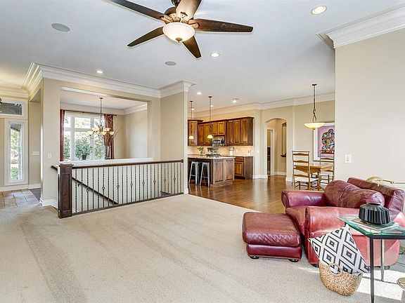 Beautiful custom built home with exceptional amenities. This home is located near I-135 on a quiet street with no through traffic and NO Special Taxes! From the time you drive up to the home you will admire the brick and stone exterior on the front of the home and the smart lap siding on the rest of the home. As you walk up the steps to the covered front porch and into the tiled front entry, you will see the quality and extra features this home has to offer. Imagine yourself sitting by the warmth of the gas fireplace this winter admiring the gorgeous 10" crown moldings accenting the living room, formal dining room, kitchen, and eating space, and the 5 1/2" base moldings throughout the home, as well as the 3 1/2" casings around the windows and rounded corners. The abundance of large windows and 10ft. ceilings throughout every room on the main level give you a bright and airy feeling. After you have momentarily gotten excited that this may be your next home, you turn your appreciation of quality features to the well appointed kitchen. You will see the quality in the stunning custom Maple cabinets and drawers that also feature soft self-closers, the 3mm granite covering the counter tops and island, the large hidden pantry, the stainless GE Profile refrigerator, smooth-top range, & built-in microwave, as well as a stainless steel Kitchen Aid dishwasher, and the hardwood flooring that extends into the eating space and formal dining room. You will be pleasantly surprised to find that when you pull into your garage it has been fully sheet rocked, the walls have been painted, the floor epoxied, and there is an extra bump out for a work area. You also find the insulated room above the garage is ready to finish to your desire. When you come in from the garage you will be in the laundry/drop zone, complete with a built-in bench and beautiful custom desk and cabinets. When you are ready to retire for the night, you will enter through the double doors into a very spacious master suite listening to the built-in sound system as you fall asleep. Refresh your self through the double doors and step onto the heated tile floor of the spa like master bathroom and then make the hard decision whether to relax in the air bubble tub or in the tile and granite shower boasting multi-level body sprayers. Topping off your experience is the dual granite top vanity, walk-in closet, and the touch-less flushing toilet. As you snap out of daydreaming that you already live here you head downstairs to the walk-out, view-out basement. Your guests will enjoy being entertained here. Bamboo flooring covers the rec room area and the family room is big enough for the whole family and all your friends. Enter through the double doors to your very own theater room with a raised platform area for seating, but not before you warm up some snacks and ice the drinks from the ice maker in the full size refrigerator that remains. When the movies over, send the kids outside in the fenced backyard to play in the fully insulated 11'x 9' clubhouse, complete with a vaulted ceiling, ceiling fan, and a skylight that opens while the adults hang out on the covered composite deck. When they come back in and forget to shut the door, you will breathe a little easier knowing you have a whole house air filter, ultra violet lights in the ducts, a humidifier, high efficiency air conditioner, 90% efficient furnace, and R-36 insulation in your attic. When it's time to see your guests off, you will turn on the sprinklers and retire back into your new home!
