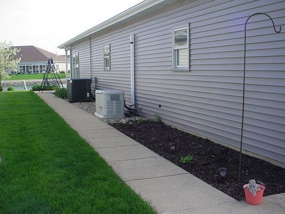 ONE OF A KIND...this one-story custom-built ZERO-LOT line home is conveniently located in sought-after Prairie Winds Sub. Lovely, well maintained with newer laminate flooring throughout, Pella windows with blinds, new furnace & A/C in 2022, new roof & siding in 2021. 2 bedrooms, 2 full baths, office(can be a bedroom), 9' ceilings, 1,900 sf with open floor plan well suited for entertaining. Light-filled with many windows overlooking the pond. Spacious master bdr (15 x 13) with walk-in closet and a private full bath featuring Whirlpool tub & a separate shower. The kitchen offers a pantry, ample cabinet space, granite counter tops, cherry cabinets, and a separate and bright eat-in nook(can accommodate larger table). All newer appliances convey with the home including W/D(located in a separate laundry room). The sliding door will lead you to a cheery 4-season sunroom(with heat & A/C) and provides access to the back yard. A wonderful pond with 2 fountains is surrounded by sidewalks & benches. Low HOA fees $100/month include mowing, snow removal, upkeep of commons areas & maintaining the pond. Minutes to shopping, restaurants, medical facilities, and near Stone Creek Golf Course. Larger 2-car attached garage, whole house generator, concrete drive and lovely landscaping. Move in and ENJOY THE PEACE AND QUIET OF A 55 and OLDER COMMUNITY. Must be home owner occupied.