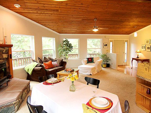 This classic 3BR/2BA, 1484 SF chalet was built in 1991 by local builder, Jack Tanner, and showcases his signature features, with some contemporary upgrades. The great room's open-floor plan takes center stage with knotty pine ceilings vaulting overhead, and an entire wall of double-pane, vinyl windows putting you among the lush, green trees. A wood stove sits upon a beautiful stone hearth with wooden mantel. The kitchen is a real showstopper, outfitted with sensational slabs of thick granite, a huge island, and plenty of custom wood cabinetry. The master bedroom is bright and cozy with a recently upgraded en suite enjoying a granite-top vanity, glass and tile shower, and spacious walk-in closet. From the master, step out to the wraparound deck overlooking the nearly 3/4 acre property rich with mature, native Dogwood trees, and evergreens, plus garden area, and seasonal creek just beyond rear property line. Quiet, private, secluded, yet only 7 miles to downtown Mt. Shasta, this beautiful chalet in the woods is waiting for you! NOTE: The accuracy of the information provided is deemed reliable but is not guaranteed, is subject to change and should be independently verified by Buyer.