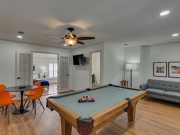 You'll have not one but two huge living areas with comfy furniture to relax on by the fireplaces. Accented by fun decor, there are great pops of color adding tons of visual interest. You can gather in either of these spaces as a group to enjoy some quality time together. On top of the two living rooms, you'll even have a game room with a pool table and fun seating. There are so many great spots to hang out in this home!