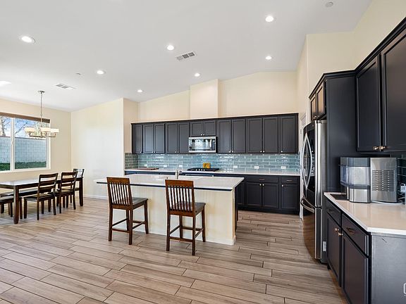 Indulge in the epitome of sophistication in this newer construction single-story haven within the prestigious Highgate community. With 4 bedrooms, 2 bathrooms, and 2,131 sq ft of modern luxury, this home boasts an open floorplan with high ceilings, wood-like tile flooring, and a chef's dream kitchen. Revel in gorgeous white quartz countertops, stainless steel appliances, and a subway tile backsplash, all illuminated by LED recessed lights. Unwind in the dual vanity primary bathroom featuring a frameless shower and a soaking tub. Dual-pane windows throughout ensure energy efficiency, creating an atmosphere of tranquility. Solar panels contribute to eco-friendly living. Embrace outdoor living on the expansive 9,147 sq ft lot, complemented by the community's resort-style amenities and a low $175 HOA fee. Enjoy two swimming pools, BBQ areas, pickleball courts, a basketball court, fire pit, dog park, and play areas. Your sophisticated oasis awaits!