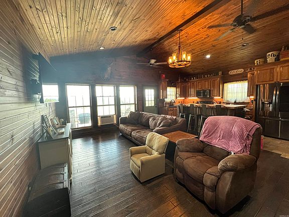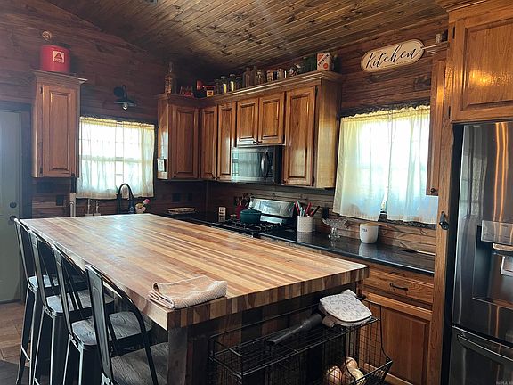 Located along Grassy Rd. in Searcy County, Arkansas, this well-built 1-bedroom, 1-bathroom cabin is the perfect retreat. Cozy up by the Buck Stove gas log heater in the rustic open living, kitchen, and dining area, with the cathedral wood ceiling, this cabin is designed for comfortable living and country lifestyle. The kitchen boasts custom cabinetry, with granite counter-tops. The custom-built island bar is something out of a magazine with a beautiful butcher block counter, and all appliances convey. Set on 13 +/- peaceful acres, the property offers panoramic views that stretch for miles—perfect for quiet mornings and evenings, watching sun rise and set, or spend some time stargazing at night. Whether you're looking for a vacation getaway or a permanent residence, this property blends tranquility with rustic charm.