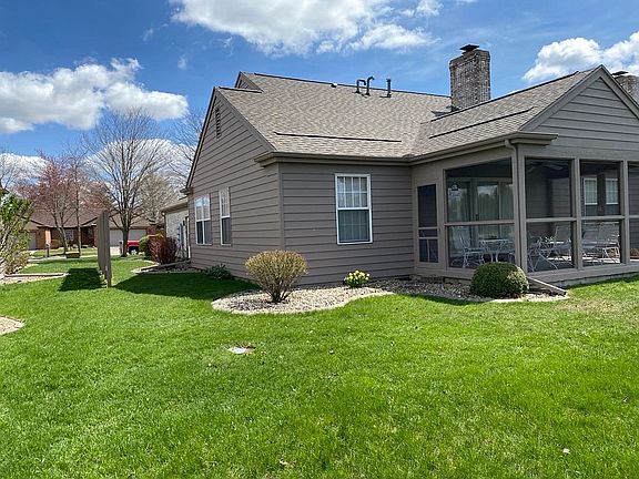 ..Wonderful condo by lake for sale! A covered porch and nice front foyer welcome you into the huge living room with vaulted ceilings and cozy gas fireplace. In the back is a very nice screened-in tiled patio with ceiling fan, and right outside is the beautiful lake and park-like commons. You'll also enjoy the open floorplan with two spacious bedrooms, 2 full baths, plus a third extra room that would make a perfect den or home office! Master suite has large walk-in closet and walkin shower. The eat-in kitchen features plenty of cabinet space as well as granite marble counters, there’s a breakfast nook and separate dining room area! There's abundant storage in the home - from a linen closet to built-in bookcase, and a separate laundry/utility room that has double pantries. Oversized attached garage also has cabinets, 2 more closets and pulldown attic access. Everything is well kept and in good condition, new roof new water heater etc. All this and convenient carefree living - condo fee covers snow and mowing with professional lawncare beautiful landscaping
