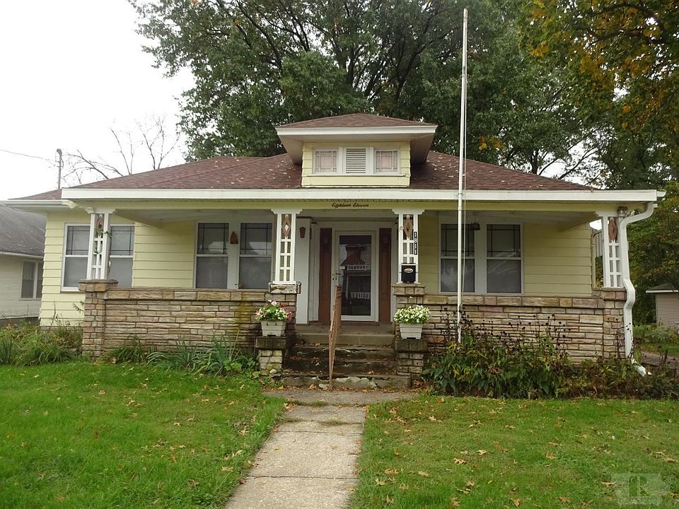 Here's the Bungalow you have been looking for! Spacious living room and formal dining room. All kitchen appliances to stay. Hardwood floors in the bedrooms! 2nd bathroom in the lower level. Washer/dryer hookups on both the main level and the basement. Open front porch and enclosed back porch. Walk up floored attic. Two car detached garage and a large storage building. Spacious fenced yard! New roof in 2014.