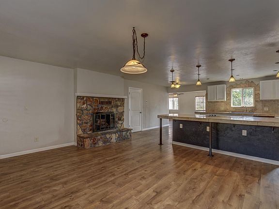 Updated open floorplan home in the heart of Prescott! Come view this charming ranch style home with cozy stone fireplace and laminate flooring throughout. Open great room welcomes you to this classic Prescott home. Open kitchen with updated light fixtures, pantry and huge island is perfect for entertaining. Relax in the family room near the pellet stove in the cool Prescott winters. Bedrooms are great for guests, hobby rooms or an at home office. Laundry room with plenty of storage. Open back deck is great to enjoy peace and quiet and view the mature trees. Fully fenced yard, sheds/ playhouse, and RV parking round off this great home. MOVE-IN-READY and centrally located close to shopping, schools and hospitals, this home will not last long. Schedule a showing today before it's gone!