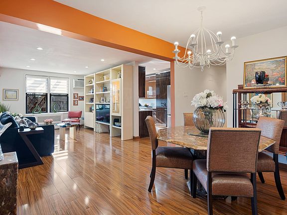 Elegantly renovated two-bedroom coop for sale. Luxury and great taste have come together in a true one-of-a-kind masterpiece. This spacious layout features large made to order closets, hardwood floors, large bedrooms, and custom kitchen. Master bedroom has 2 windows allowing for lots of natural light and can easily accommodate a king size bed. Full wall length of closets accompanies the master bedroom. The secondary bedroom is currently used as an office but can accommodate a full-size bed if need be. The windows in this bedroom face South bringing in tons of natural light. Both rooms offer storage options and spacing that is difficult to find in many coops or condos today. Living room, dining area and kitchen are designed in a way that ideally utilizes the space. Kitchen islands are 10ft plus long on each side with granite tops. Custom cabinetry perfect for all your big and small cooking storage needs. A separate dining area allows space for a six-person table. The living room is expansive, offers a great space to lounge or to entertain and has windows facing South allowing tons of natural light. Entry foyer has a deep coat/shoe closet. The building has two renovated laundry rooms, two new elevators, storage, and common courtyard where kids can play & owners can lounge. Short walk to 3 trains B/Q/F. Low maintenance of $710 monthly which includes all utilities!!! Must have minimum 30% down payment. Very well managed building with live in super, don't miss this opportunity