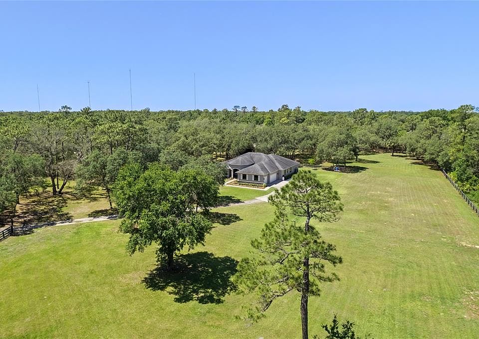 This gorgeous, privately gated 5.25-acre estate is located at the end of a cul-de-sac and features an 8-stall barn that is well maintained, and the entire property is fully fenced & ready for your boat, RV, pets & horses. The barn offers a tack room, a separate feed room with refrigerator, 2 inside wash racks, insulated roof system along with extra wide 14' brick paver aisle way for traction & easy drainage. The feed room is plumbed & ready for water connection. Washer/dryer hookups are also available. The tack room is insulated for temperature control. Barn is also equipped with a compressor for car enthusiasts. The barn has its own mailing address & this property offers a rare separate gated entrance from the backside of the property for a future in-law suite or tenants & boarders. This back entry is large & open to accommodate additional parking & turnaround space for horse trailers, farrier & vet. There is plenty of land with pristine grass & towering oak trees to add more divided pasture areas to the entire property. The barn & the property are a horse-lovers dream, but the interior of the 4BD 3BA home with a separate home office is a showstopper! This home is move-in ready, professionally cleaned & most rooms have been freshly painted. The dark wood floors are complemented by the soaring ceilings in the formal areas, and you have breathtaking views of the property as you enter the home through the glass, double front doors. This functional 3-way split floor plan presents a gourmet kitchen in the heart of the home. Featuring upgraded cabinetry with crown molding, gas range with custom hood vent, granite countertops, center island w/wash sink, stainless-steel appliances, built-in oven & microwave, a wine frig & appliance garage, this is a chef’s dream kitchen. The breakfast nook is open to the family room & offers a fabulous view through the massive seamless glass window of the covered & open patio spaces. The owner’s suite, with 3 separate closets, has private access to the covered lanai with panoramic views of the back of the property. The patio is pre-plumbed for a future outdoor kitchen area. The on-suite bath is a spa-like retreat with centerpiece jetted garden tub, separate oversized, glass-enclosed shower stall & individual vanities with granite countertops. The home office is located just outside of the main suite for a short commute to work. Two secondary bedrooms share a Jack-n-Jill full bathroom and there is a guest bedroom and a 3-piece bathroom with a glass door leading out to the back patio. It’s the perfect floor plan for a future swimming pool! This home was well-constructed with Icynene foam insulation & double-lined walls, which means low electric bills. The 3-car garage with brick-paver parking pad has a useful closet organization system. MUST HAVE items for any rural estate home include a 3HP deep water well, concrete gravity septic system and a water softener system. Many upgrades have been made to this home, including French drains for the front gutters & permitting for a future septic system at the barn is complete & valid thru Sept 2024. New Roof with transferrable warranty is scheduled for installation at the end of May. This peaceful, private & tranquil setting was high & dry through all storms and is only minutes to 419 for easy access to major highways & a quick commute to area schools. This dream home in the country will not last long! This property may be under audio/video surveillance.