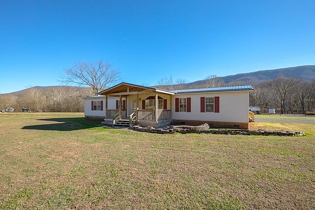 Beautiful home, creek frontage, and setting! Along Wolf Creek in Giles County, VA is where you'll find this very nice 3 BR 2.5BA doublewide on +/-2.8 level acres. The home was built in 2011, has over 2000 total finished sq. ft., and a permanent foundation. This home has been well taken care of and all the rooms are enormous. Full length covered deck at the rear, covered front porch, fenced and ideal for a horse, metal roof, gas log fireplace, heat pump, large barn and small building for storage, public water, own septic, insulated tilt windows, and all existing appliances convey. This is a great property at a great price!