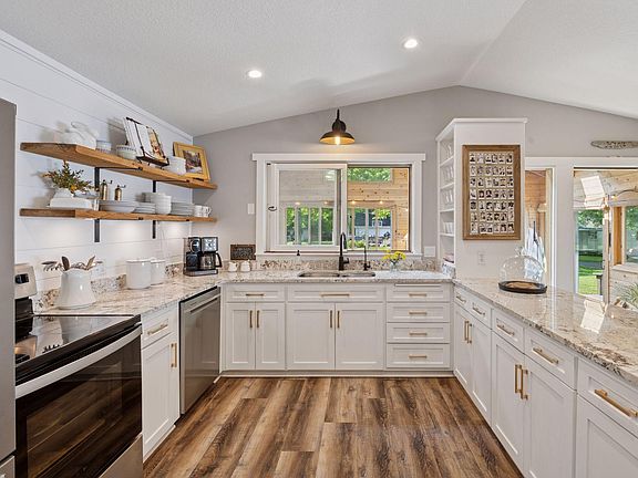 Absolutely stunning lakeside cottage style home on beautiful Lake Pulaski. Prime West facing lakeshore on the areas finest lake. Known for clean, spring fed water and a premier fishing and recreational destination. This home is a perfect choice for year round living or a charming cabin close to the metro yet far enough to get away, plus enjoy all the conveniences and charm of Buffalo. Fully remodeled and ready to enjoy lakeside living. Gorgeous open concept design w/ spacious kitchen flowing into the vaulted family room overlooking the lake. Convenient one level living w/ all amenities on the main level. 3 bedrooms plus a large office area or use as a bunk room for more sleeping or a secondary rec room. Updated James Hardie siding and newer roof, plus enjoy the newly built kids playhouse or relax at the lakeside firepit w/ the perfect view. Rare, lakeside building makes storage very convenient. Don't miss out on this rare opportunity. Enjoy the lakeside retreat you've always wanted.