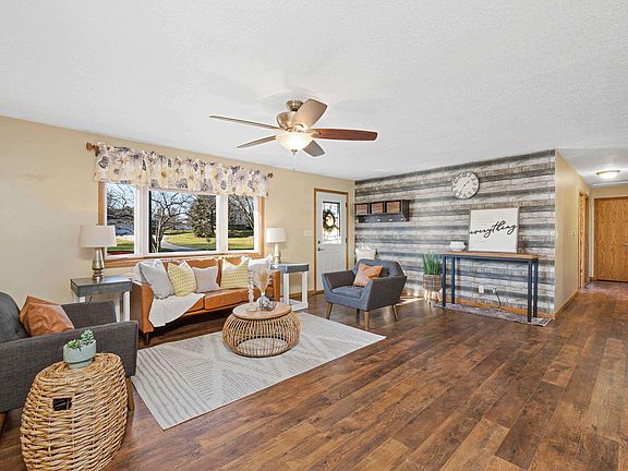 Beautiful ranch home on 1.27 acres in Eldridge, Iowa. Featuring an open concept living space with an updated kitchen, dining and living area perfect for entertaining. A primary bedroom on the main level offers an attached, half bathroom along with 2 more bedrooms and an updated full bathroom. Entering the basement of this home can be found a large rec room with a pellet burner and endless opportunities for activities, along with a flex space perfect for a playroom, fourth bedroom accompanied by a full bathroom, and a large laundry room and storage space to complete the lower level. Enjoy an oversized 1,500 square foot heated garage with plenty of room for vehicles, toys, activities, and more. The garage is finished off with ample storage shelving and closet space. This home offers a complete fenced in acre of yard perfect for pets, along with an above ground pool with an extended deck and hot tub. Rounding off this property is a great sized storage shed, basketball court and hoop, chicken coop, and an amazing garden including established vegetable crops and three apple trees.