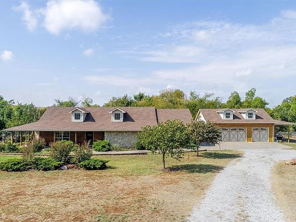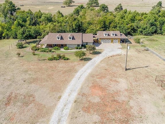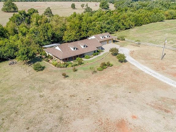 12 acres MOL of Horse Property with paved roads close to Edmond and Stillwater. Property is less than 1 mile from Cedar Valley Golf course. Enjoy country living in your new 3 bedroom, 2 bath. laundry room, office and extra room for playroom, study etc. Kitchen includes solid surface counter tops and a nice pantry. Large front, side and back porch to watch the deer, turkeys, hummingbirds and more! Plenty of water hydrants for your livestock, a run-in shed with attached dry lot fencing. Property has a 40 x 60 shop with electric that has a high roof and is large enough to store an RV or a boat with a tower. A mobile home pad with its own electric and septic are also included on this acreage! Paved roads to the property. Truly a unique acreage!