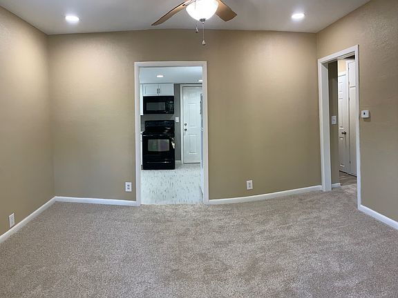 This is a very nice 2 bedroom home which has just been completely remodeled with attention to every detail! You enter into a nice living room which leads to a stunning kitchen with new cabinets, counter tops, recessed lighting, and a luxury vinyl tile floor. It has a new refrigerator, new microwave, and matching glass top stove. The master bedroom has a full size closet with mirrored doors and direct access to the bathroom. The second bedroom has a smaller closet with a regular door. Both bedrooms and the living room have ceiling fans. The bathroom is accessible directly from the master bedroom and from a hallway off of the living room. It has a utility basement with washer and dryer hookups and central heat and air conditioning. It has a great detached garage which can also be used as a woodworking shop. The huge back yard is fully fenced and has a shed. It also has an additional fenced area for pets. The rent is $825.00 and the security deposit is $825.00. The lease term is 1 year and then month to month after that, if you wish. This is a NO SMOKING home. Please don't text or email, just call me between 9:00am and 10:00 pm. THANKS! Trash service is furnished. This is a no smoking home. Renters insurance is required.