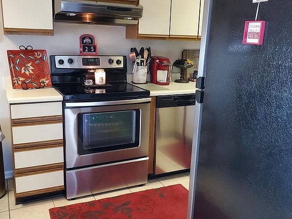 Beautiful townhouse condo featuring 2 large bedrooms, 1.5 baths and attached garage. Kitchen is eat-in and equipped with range, refrigerator and disposal. The large living room walks out to private patio with view of woods. Home is immaculate, decorated with neutral colors, and ready for quick possession. Newer windows and vanity in main bath. Very private area close to shopping, restaurants and everything you need!