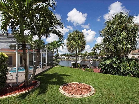 This is a VACATION RENTAL only. Owner will not consider an annual rental. Weekly rentals permitted. This is a charming Floridian Villa with 1,742 sq. ft living space on a beautifully maintained property with tropical landscaping. It is perfectly located in a very friendly neighborhood on a Gulf access canal with only about 5 minutes to the river by boat. By car, you will reach downtown Cape Coral with its impressive variety of restaurant, bars, shops and supermarkets in about 5-7 minutes. When you enter the house you will appreciate the quality furnishings and tasteful decorations. This beautiful appointed 3 bedroom, 2 bathroom Gulf access pool home is perfect for families or couples traveling together, Outside enjoy your very own tropical oasis, complete with an electric heated pool, amazing waterfront views, and a sun deck right at the canal. The fully equipped kitchen with its elegantly finished counter tops, bright cabinets, stainless appliances, and breakfast bar has everything necessary to prepare delicious meals. The spacious Master Suite features a King size bed,a flat screen TV, a luxurious master bath, a walk in closet and sliding doors to the pool area.